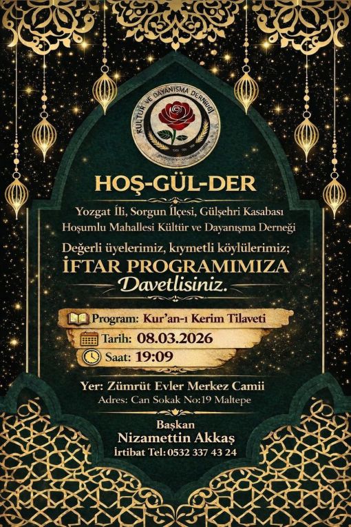 Değerli üyelerimiz derneğimizin her yıl yapmış olduğu iftar yemeğine tüm üyelerimiz aileieri ile beraber davetlidir.